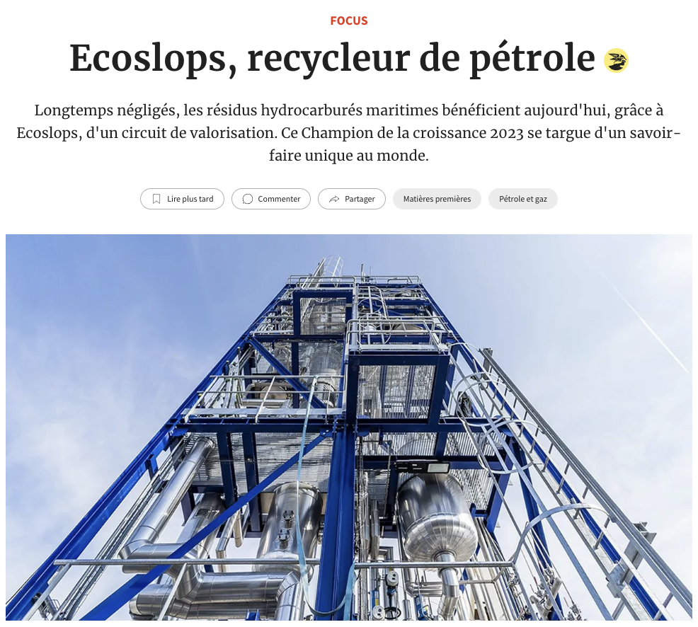 LES ECHOS – « Ecoslops, recycleur de pétrole » Article du 10 février 2023 – « Ecoslops, recycleur de pétrole »