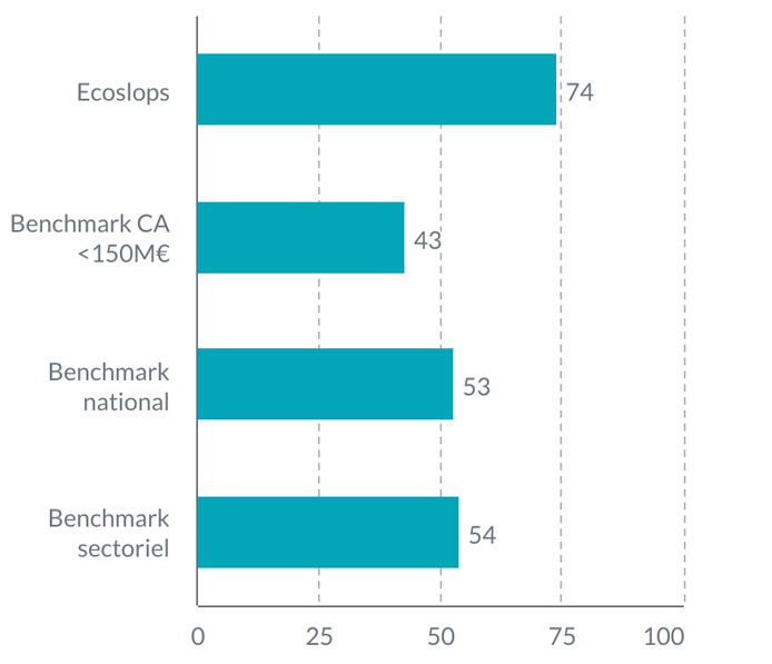 Pour la campagne 2021 (réalisée en 2022), le Groupe Ecoslops s’est vu attribuer une note de 74/100, en augmentation de 6 points par rapport à la campagne précédente.